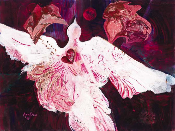 The title of this mixed media collage is "My Heart Takes Flight."